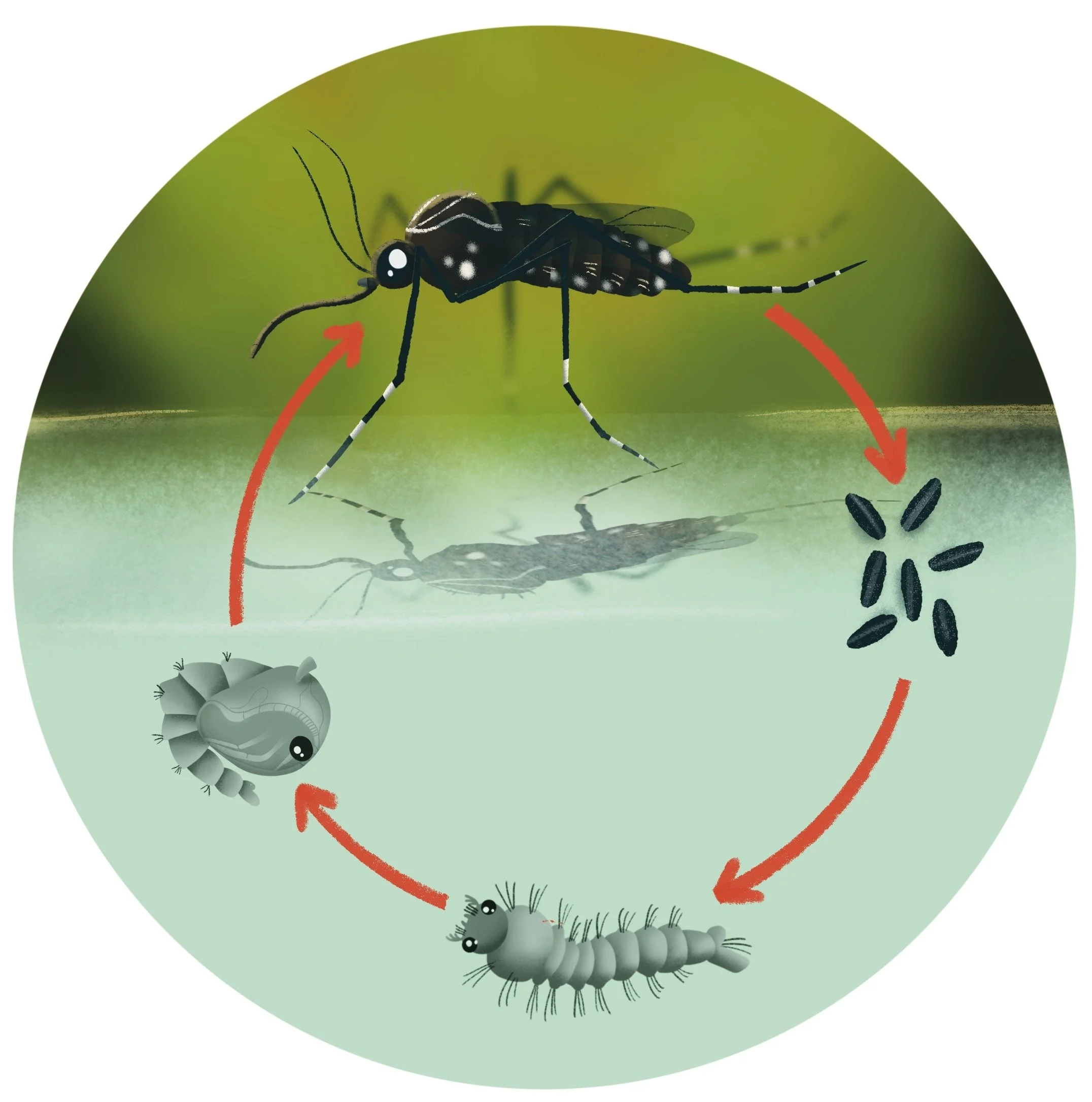 The lifecycle of a mosquito, from Grandmother Mosquito (2022) published by the Orange County Mosquito and Vector Control District.